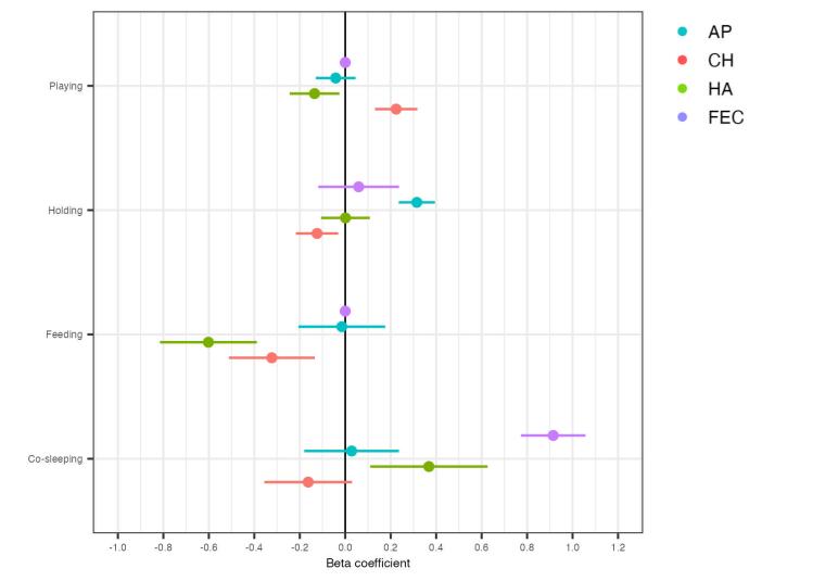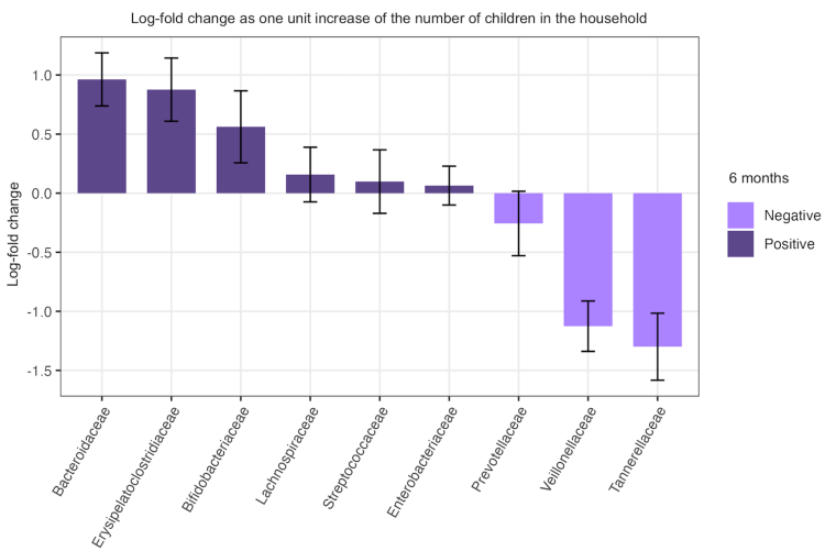 In collaboration with colleagues at the Office of Population Studies at the University of San Carlos in Cebu, I found that prenatal household size predicted infant gut microbial diversity. This relationship differed at 2 weeks versus 6 months of age. As infants grow older and become more mobile, they may interact with microbes that persist in the broader household environment.